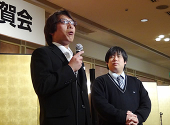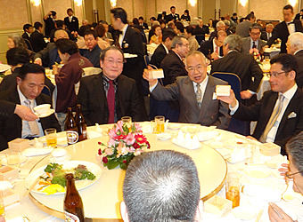 「・・・次の200周年は、五代目がやります!」 四代目の頼もしいあいさつに拍手喝采。 最後は、小島家と会場が一体となって手締めです。 家族を愛して、みんなに愛されて・・・ 100年続いた老舗の、愛情あふれるとっても素敵な祝賀会でした。 各組合員様のおめでたい事件やイベントなど取材に行きますので どしどし組合事務局 佐藤まで御連絡くださ〜い。 | ||