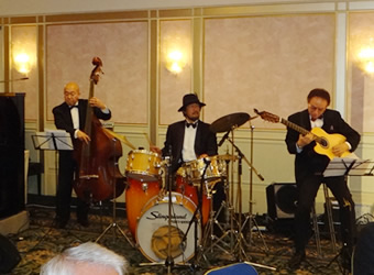 | 生ジャズバンドによる小田陽子さんのライブがはじまりました。 「愛の賛歌」をバックにおかみさんに、日頃の感謝をプレゼント!!会場は大盛り上がり。 | ||