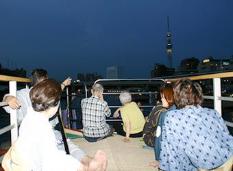 隅田川の花火を屋形船で見物しよう!という、なんとも粋な企画。