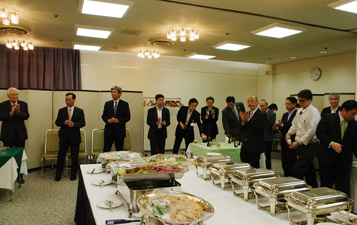 平成28年6月 東京シティエアーターミナルにて 久松料理飲食業組合 定期総会を開催し、 三田会長と事務局の佐藤氏の交代が発表されました。 会長後任には、満場一致にて玉ひでの山田氏の就任が承認されました。 新体制にて新たなスタートを切る、久松料理飲食業組合を今後ともどうぞよろしくおねがいいたします。