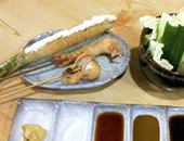 Famous for deep-fried skewered vegetable, meat and tempura.